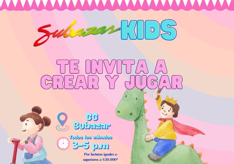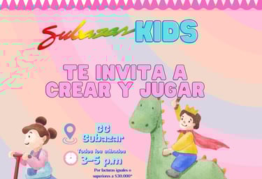 Un evento para los chiquitos de la casa, ven y diviértete con nosotros, puedes participar por compras iguales o superiores a $30.000. Todos los sábados de 3:00 p.m. a 5 p.m. en la plazoleta principal.